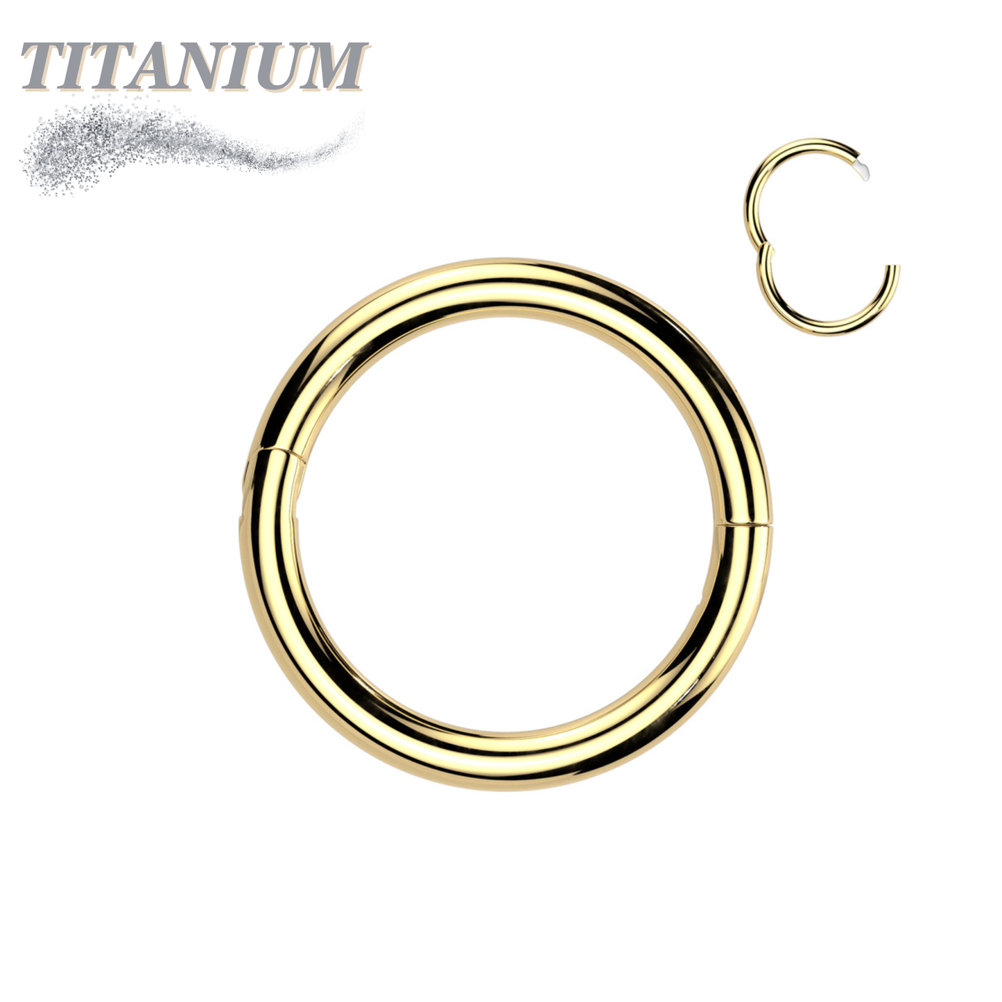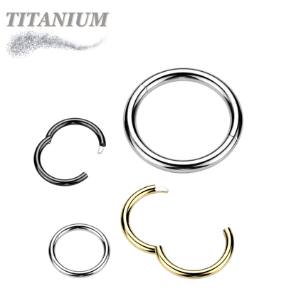 New style - the hinge breakpoint is half way through the ring, allowing for a larger opening which many find easier to fit onto nostril and daith among other piercings. They are made from ASTM F136 implant grade titanium. The hinge is solid and secure, it is open and closed with fingers, no tools necessary.