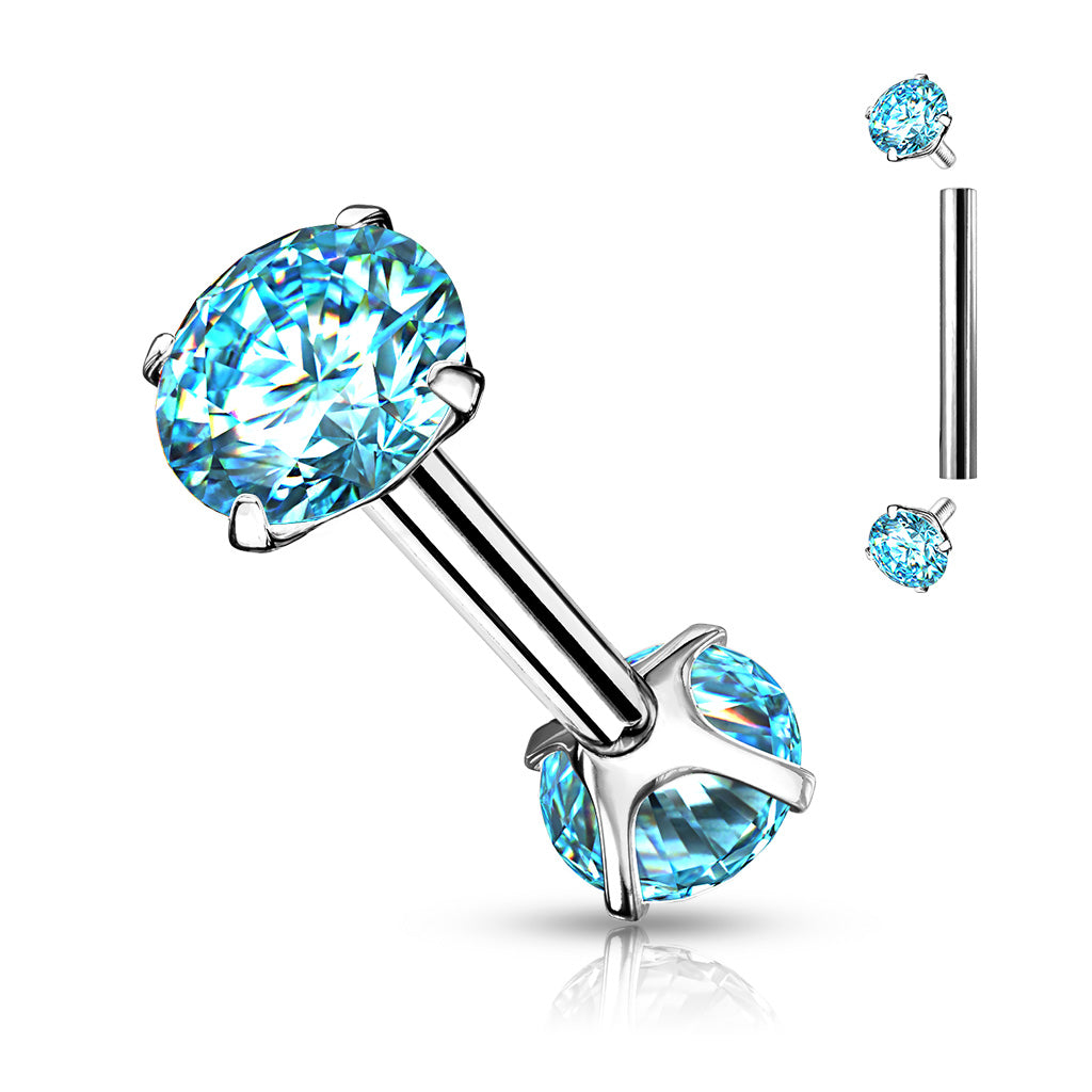 Surgical Steel 16G Barbell with Internally Threaded CZ Prong Ends