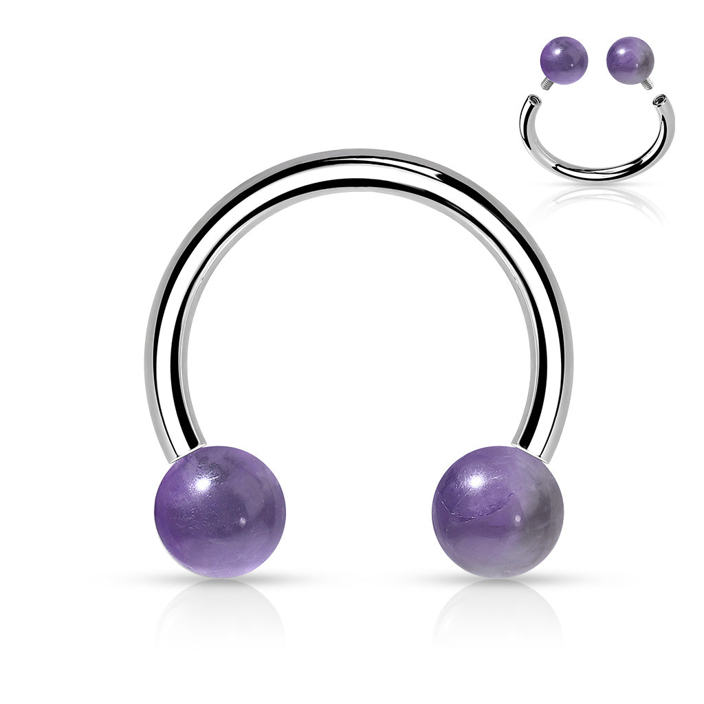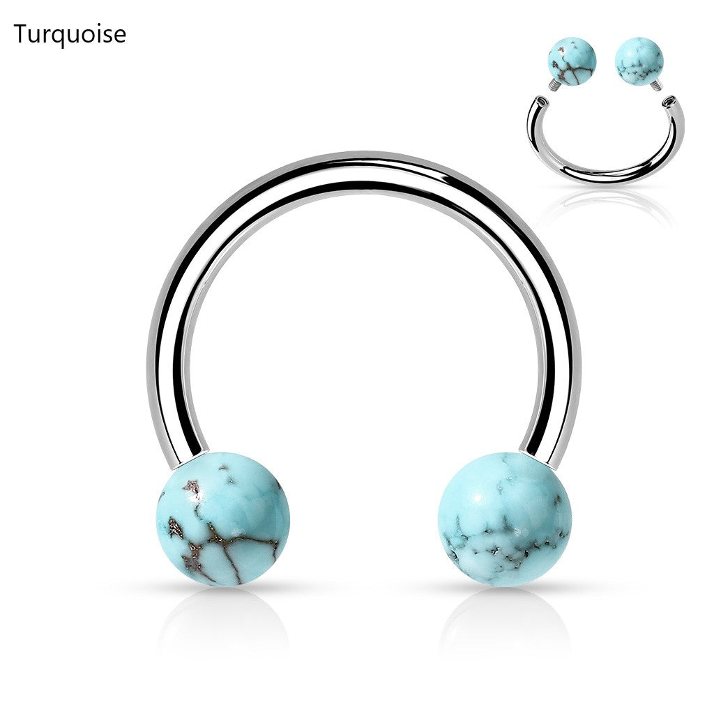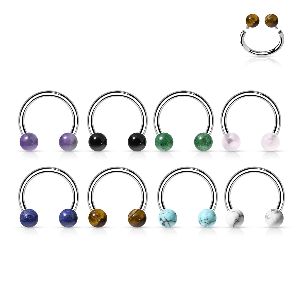 Surgical Steel Internally Threaded Horseshoes with Semi Precious Stones