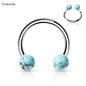 These surgical steel circular barbells are 16G 10mm with 4mm internally threaded semi precious stone balls.