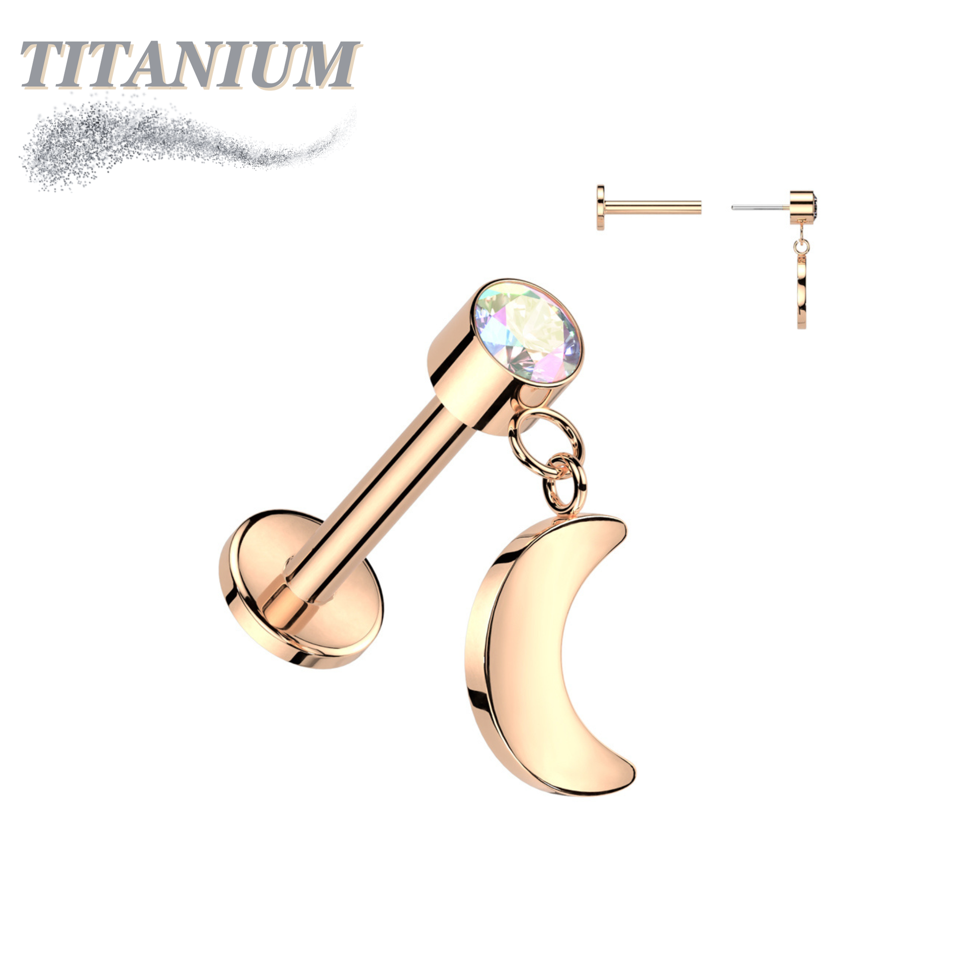Threadless Titanium Round Bezel with Dangle Crescent Moon Labret Combo