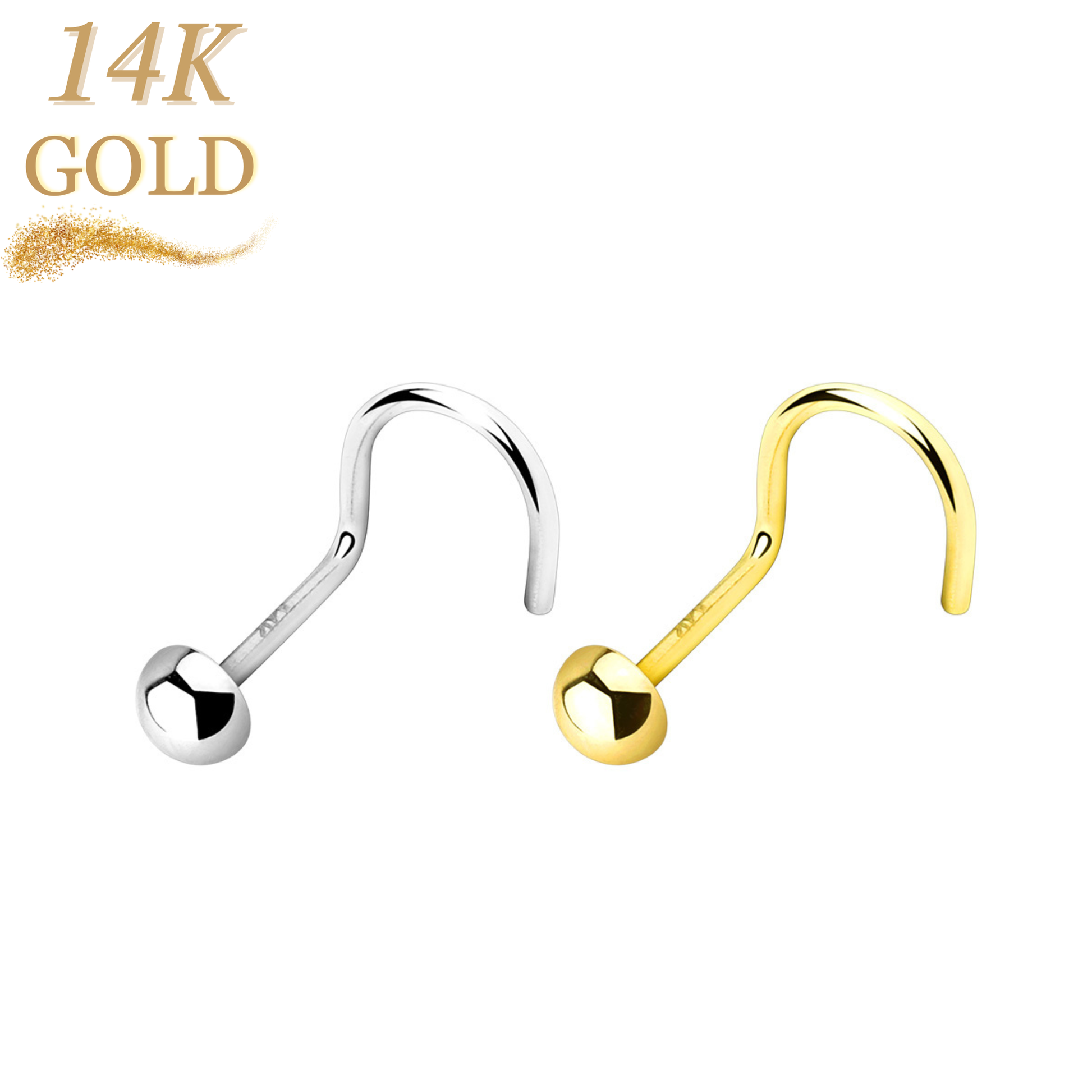 14K gold L bend nostril jewelry featuring a 2mm dome top which sits flat against the skin in 20G with 6mm straight wearable length.