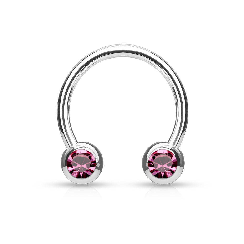 These circular barbells are 316L surgical steel with externally threaded jeweled ball ends that face forward.